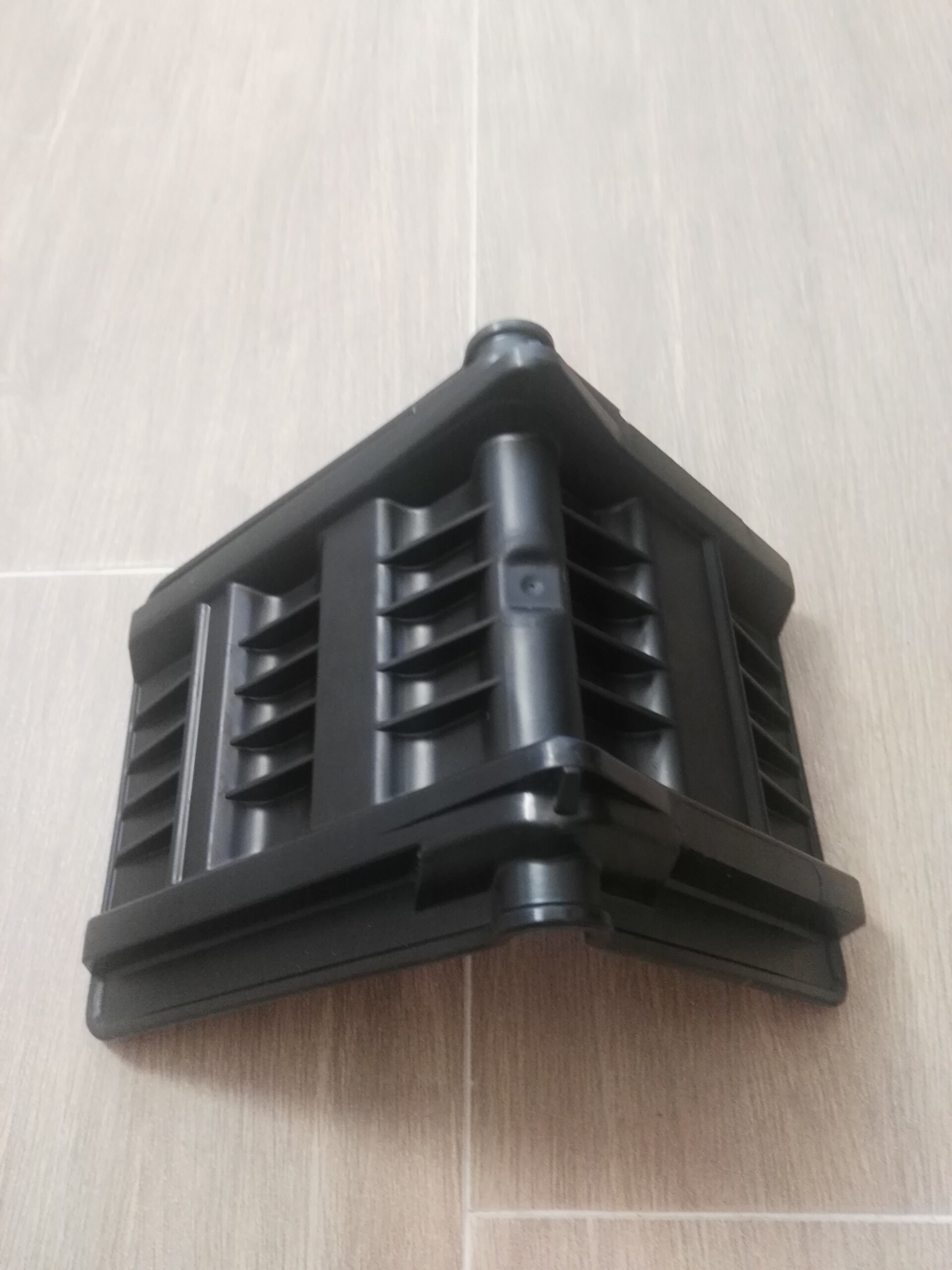 Cantonera de polietileno de alta densidad de color negro de dimensiones 110 mm para cada lado, apta para cinta de amarre de 50 mm de ancha. Para transporte general y de bobinas